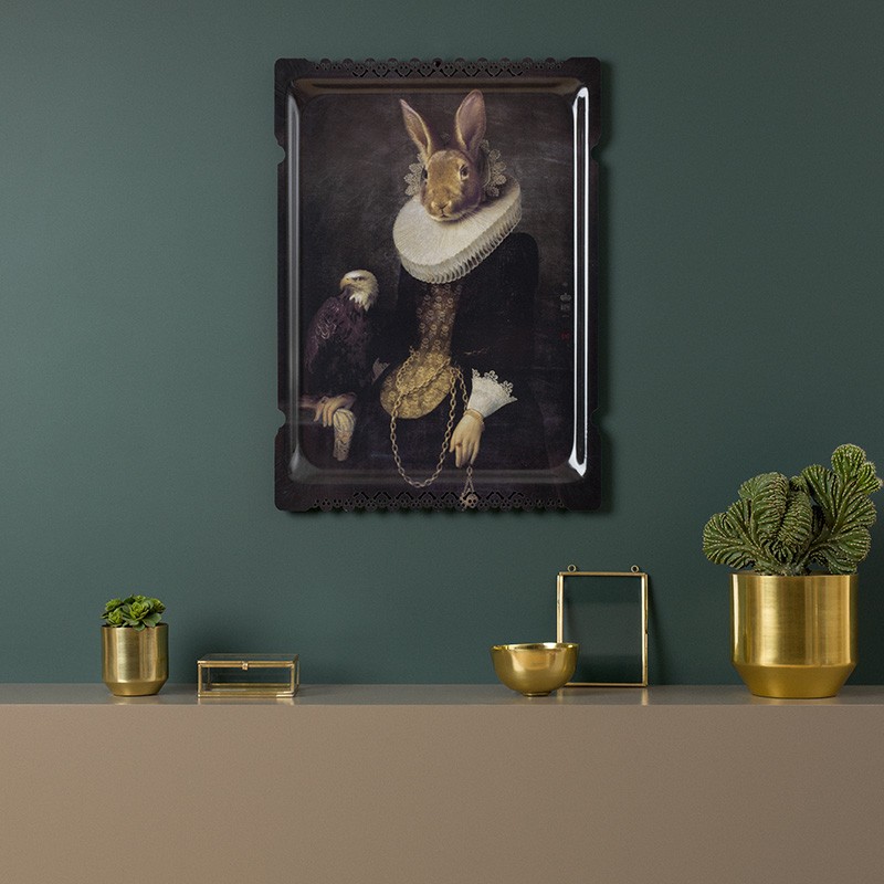 Le plateau de service ZHAO dissimule avec grâce et habilité un tempérament fort. Il sert au service, et ensuite s'expose librement sur le mur comme une oeuvre picturale, une peinture mythologique, pleines d'histoires.