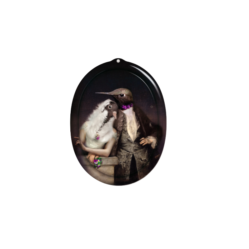 Le plateau de service THE LOVEBIRDS dissimule avec grâce et habilité un tempérament fort. Il sert au service, et ensuite s'expose librement sur le mur comme une oeuvre picturale, une peinture mythologique, pleines d'histoires.