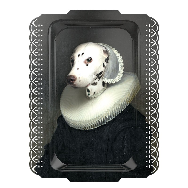 Le plateau de service ARTHENICE dissimule avec grâce et habilité un tempérament fort. Il sert au service, et ensuite s'expose librement sur le mur comme une oeuvre picturale, une peinture mythologique, pleines d'histoires.