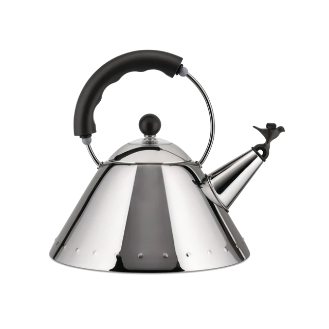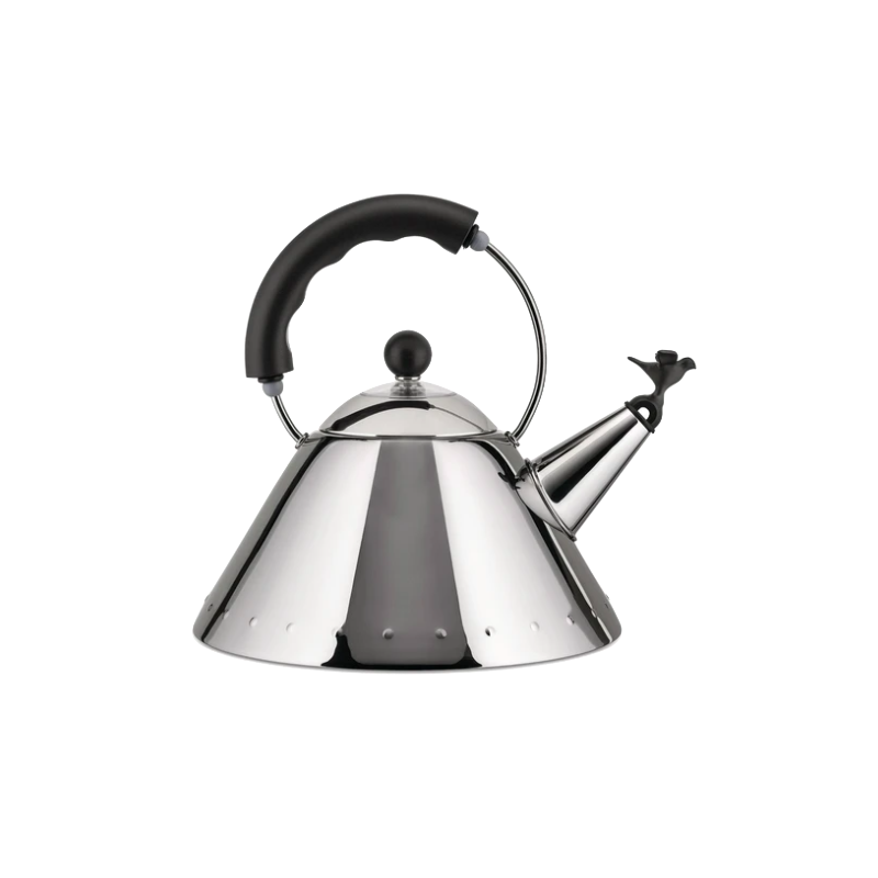 Cette bouilloire de chez Alessi possède un oisillon en guise de sifflet. Écoutez le chanter et fête de cette bouilloire votre meilleur ami du quotidien.