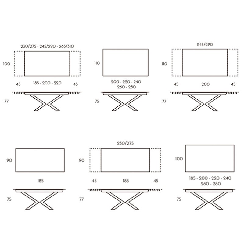 - Dimensions : L. 200 (+45+45) l.100 x H. 77 cm