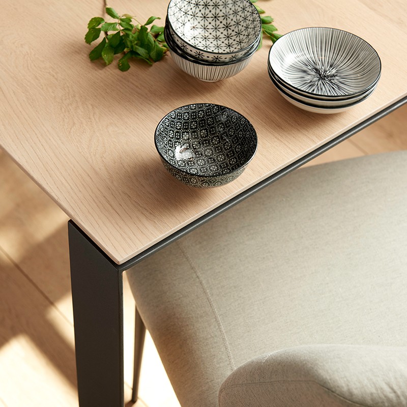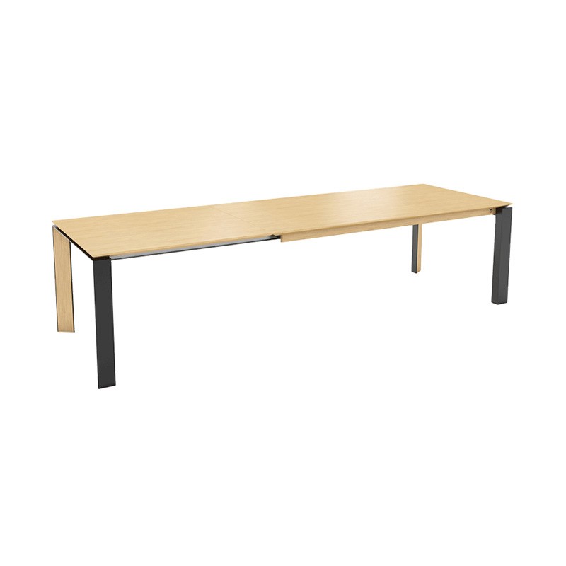 La table à diner Oxford, pilier de la marque Mobitec est une table épurée qui fait son effet. Ses pieds métal thermolaqués et son plateau chêne (E11) apporteront la chaleur nécessaire à voter salle à manger. De plus, son plateau extensible d'un mètre fou permettra de jouer sur la profondeur de votre pièce.