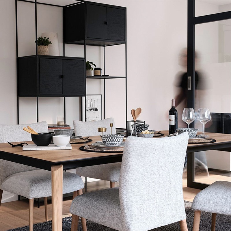 Le modèle float de Mobitect se décline de plusieurs façons. Ici, le modèle exposé est totalement en bois, avec un piètement carré. Cette table est disponible en piètement 100% métallique qui s'allie au bois pour habiller votre salle à manger. Son piètement noir ou blanc vous donne la liberté du choix de l'ambiance de votre pièce. De plus le plateau en chêne massif (E11) apporte une finition sans pareille à votre décor.