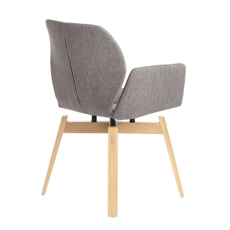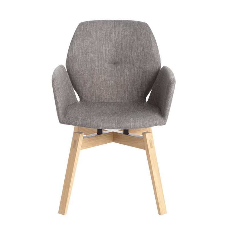 A la différence de ses congénères, la chaise Mood 95 nous apporte un confort supplémentaire avec deux accoudoirs. Basée sur le même principe que les Mood 11 et Mood 91, ce modèle existe en 6 catégories de tissu et deux type de piètement. Ici la présentation montre une chaise en tissu uni de catégorie 2 avec un piètement bois.