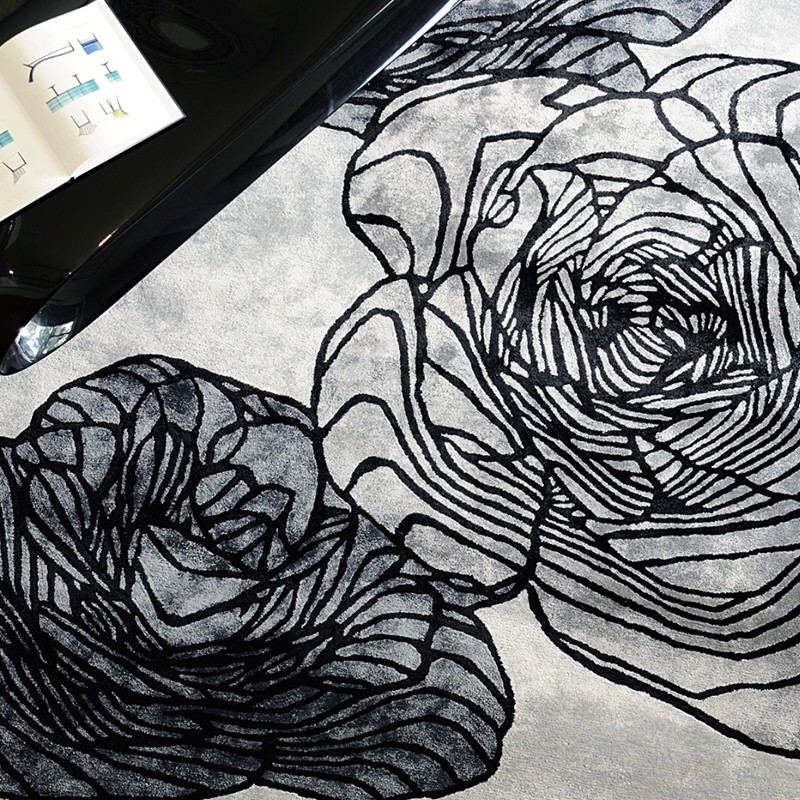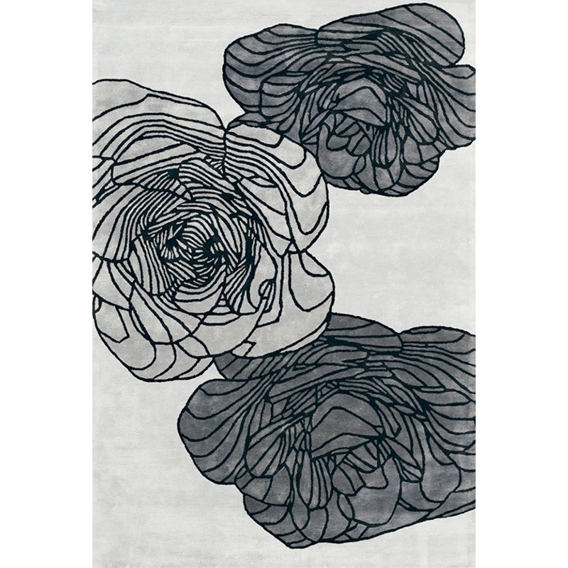 Tapis Adam, de la marque française Toulemonde Bochart. Un tapis plein de caractère, qui met en avant sa beauté par sa composition florale et sa couleur argentée.