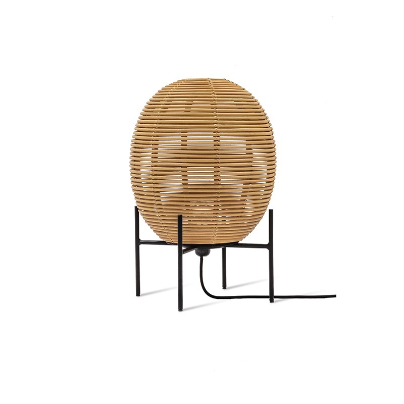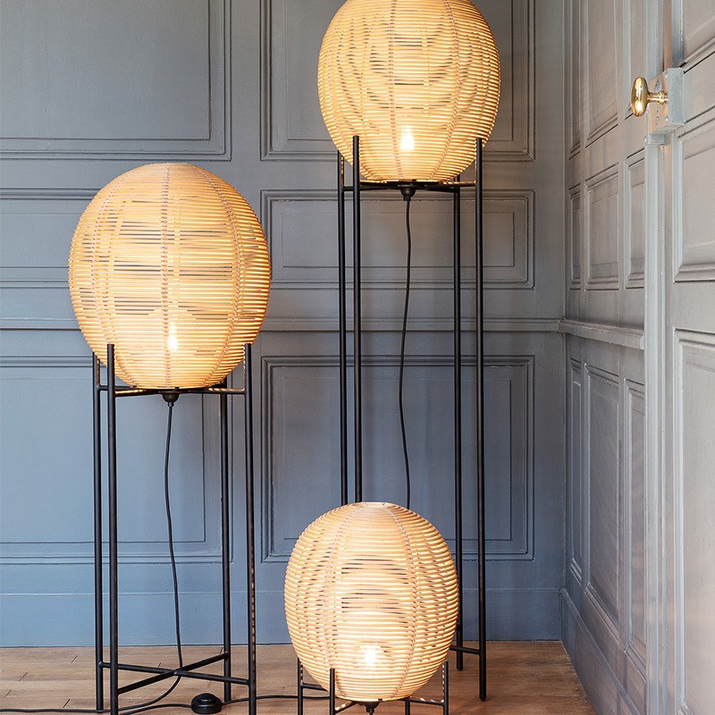 La collection Sari offre trois luminaires de tailles différentes. Ce qui offre différentes compositions possibles. Cette lampe en rotin et acier thermolaqué noir s'ancre dans un style unique.