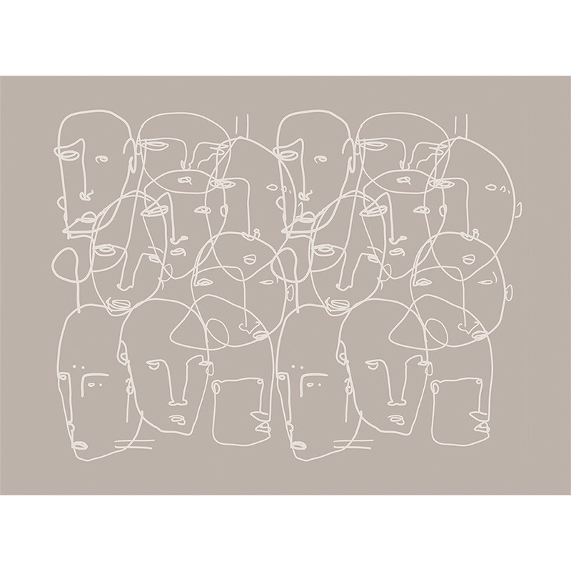 Des set de table aux motifs originaux présentant des visages dessinés en un trait rappelant les statues de l'île de Pâques.