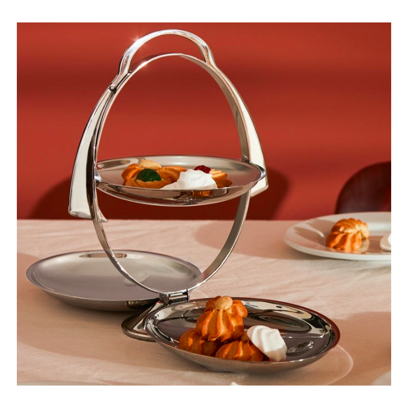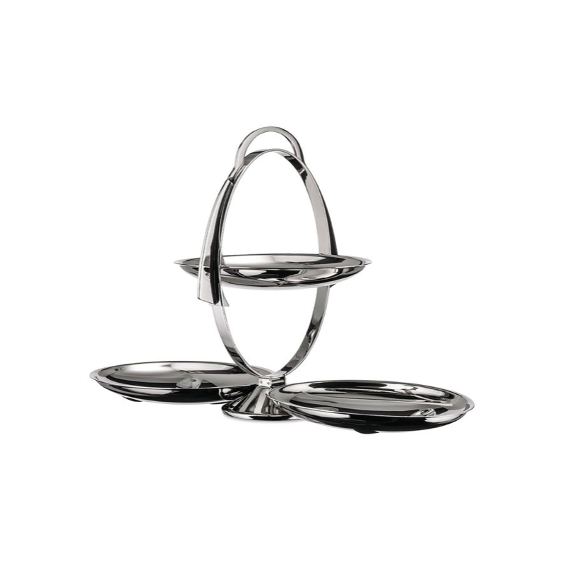 Surtout pliable en acier inoxydable sur lequel peuvent être déposé confiseries, gâteaux ou viennoiseries.