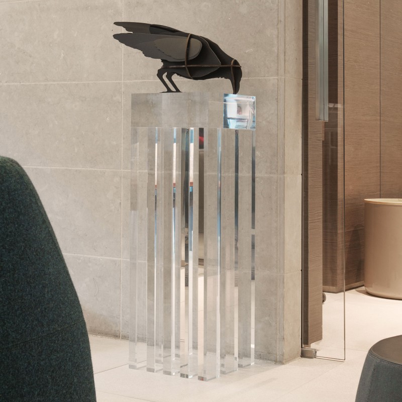 Luxis, équipe de designers établis en Bretagne, associé au savoir-faire de Pluxi, entreprise d'ébénisterie plastique, a revisité un des éléments les plus anciens des arts décoratifs : la stèle.