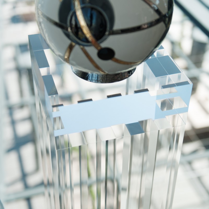 Le plexiglas de haute qualité et de transparence extrême joue avec la lumière et les rayons du soleil pour n'être que reflet, brillance et scintillement.