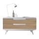 Quand les années 1950 se métissent avec le contemporain, s'ensuit un heureux mariage comme en témoigne la Commode Kapriss. Elle est éditée par la marque hexagonale Les Iresistub, qui depuis 1953 se consacre au travail du métal dans le mobilier. Elle est principalement composée d'acier et de peinture poudre Epoxy thermolaquée. Le placage chêne des deux tiroirs est la seule partie visible qui contraste avec la tôle savamment travaillée.