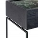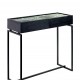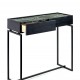 Un plateau de marbre noir strié de blanc est encadré par un large cadre de bois peint qui recèle deux discrets tiroirs.