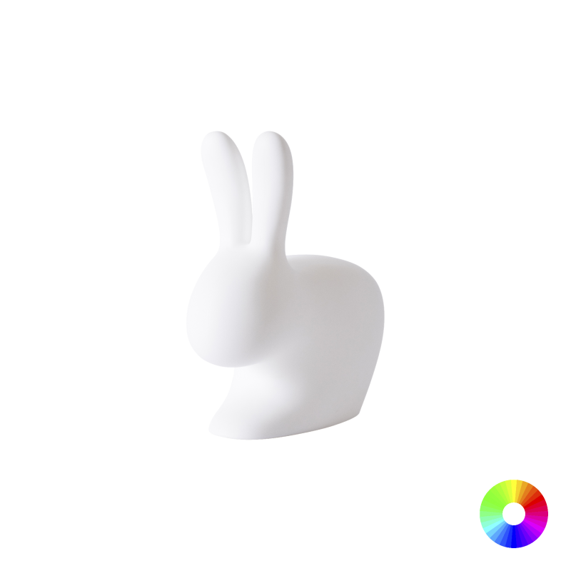 Le fauteuil Rabbit Chair lumineux ravit les grands comme les petits. Existant en deux tailles et doté d'une ampoule multicolore, il peut être une lampe féerique à poser dans une chambre d'enfant ou égayer un intérieur ou un extérieur en apportant une touche décalée et originale.
