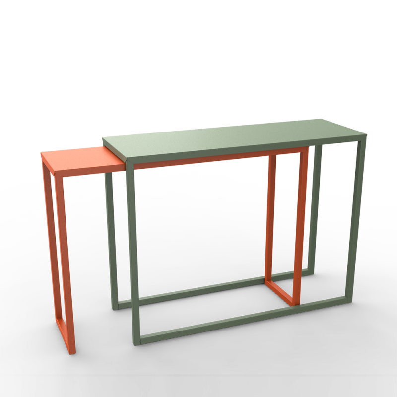 Le designer fait souvent preuve d'humour et d'astuce dans ses créations. Les deux tables ont la possibilité de se glisser l'une sous l'autre. Ludiques, vous pouvez jouer de leurs couleurs, grâce à une palette aux choix multiples, mais également de leurs dimensions en les éloignant ou les rapprochant à votre guise.