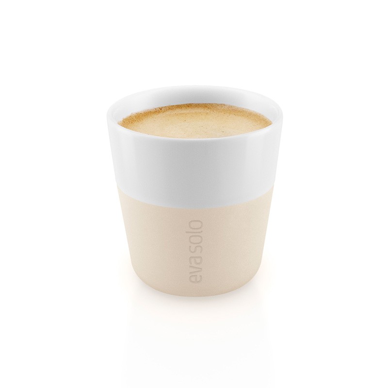 Une tasse en porcelaine et une gaine en silicone qui assure un confort et une prise en main parfaite. Les 80 ml de contenance correspondent exactement aux réglages standart des machines à cafés les plus populaires. Vendu par lot de 2 tasses.