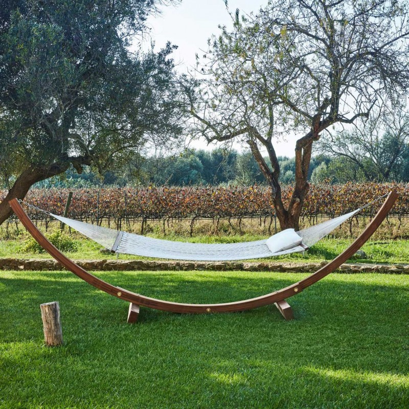 Ce hamac est fourni avec un filet 100% coton blanc écru, coussin et structure en bois.Le hamac Amanda, de la marque italienne Unopiù, a un prénom de star. Mais au-delà du prénom, ce hamac revient à côtoyer une véritable icône cinématographique qui a servi d'élément de décor à des films comme "La Grande Bellaza".