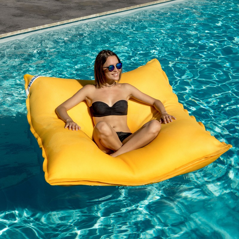 Enfin un coussin flottant élégant et sur lequel on peut se prélasser en toute sécurité car insubmersible !