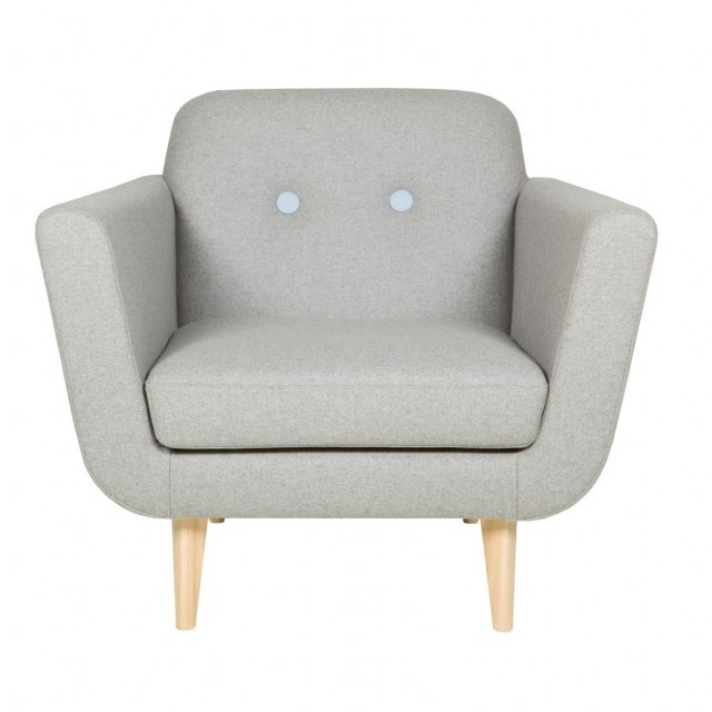 Seuls les accoudoirs ainsi que les pieds viennent casser par leur verticalité les contours principaux.