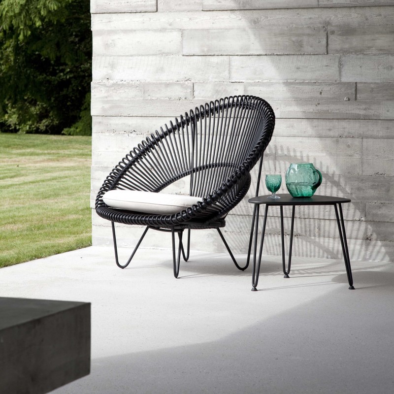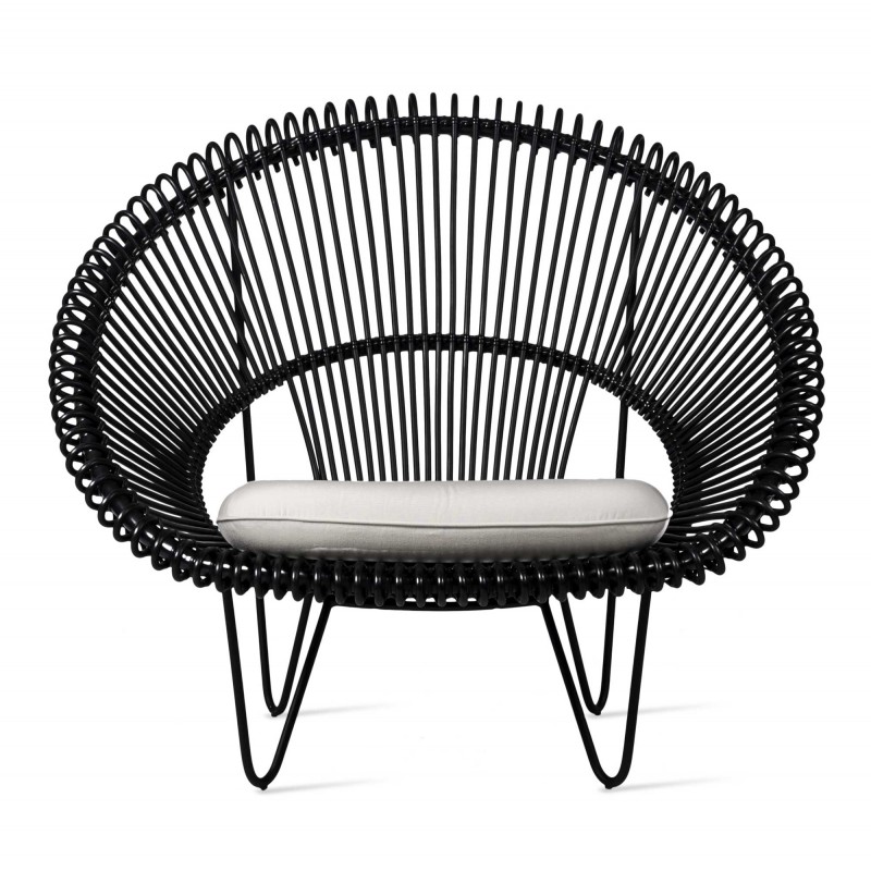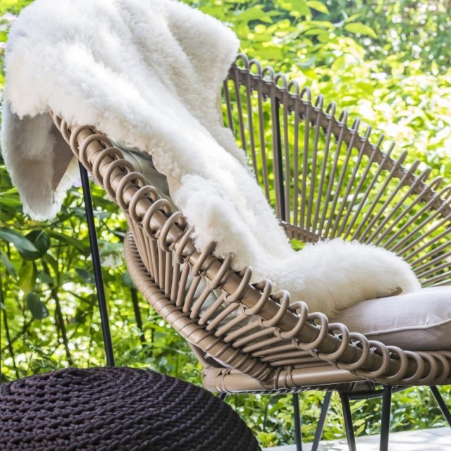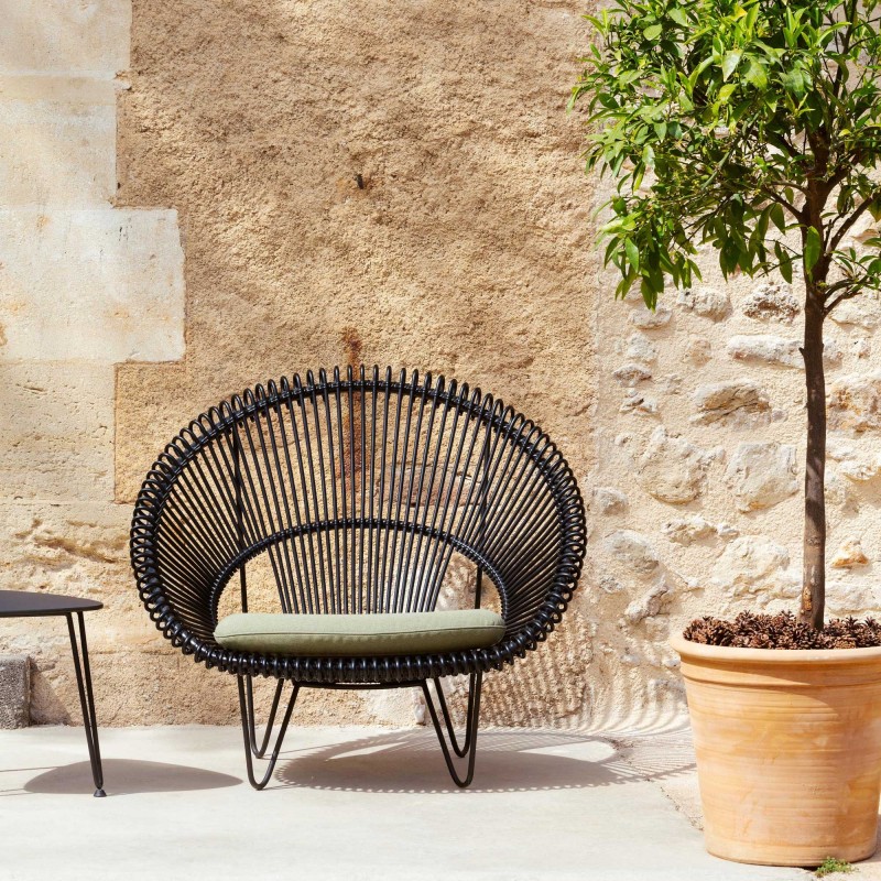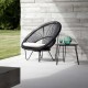 L’effet décoratif est dû à un savant tressage en polyéthylène résistant aux U.V. Ce réseau linéaire est compensé par un unique et confortable coussin à housse amovible traité lui aussi pour résister aux intempéries. Sa forme enveloppante est parfaite pour vous prélasser sans vous soucier de ce qui vous entoure.