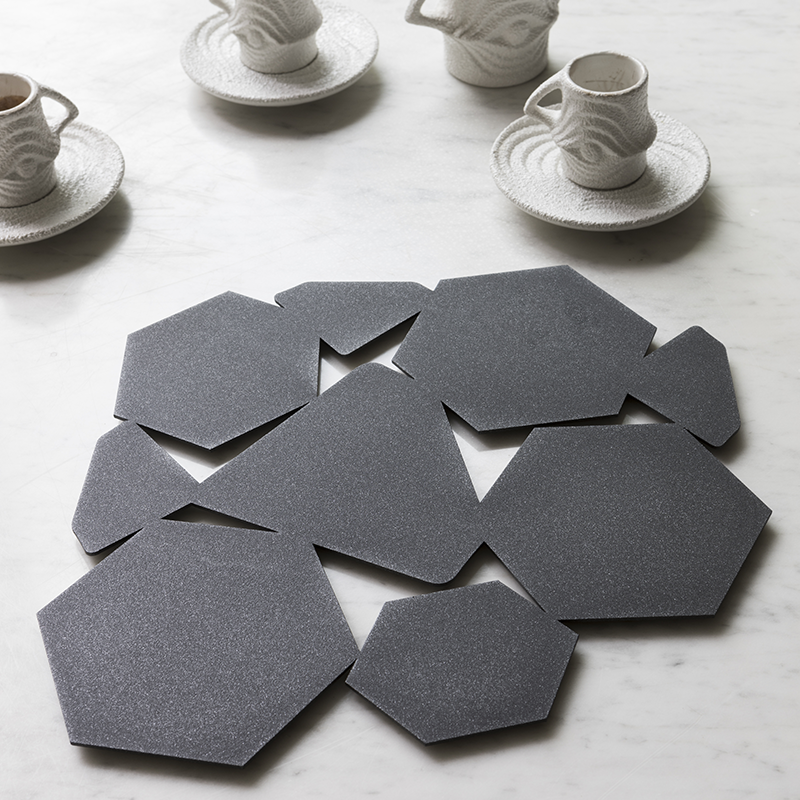 Tout en acier recouvert de peinture poudre Epoxy et découpé au laser, le centre de table Eurus répond aux exigences de la marque Matière Grise : une qualité irréprochable et une recherche de fonctionnalité optimale 100% française. Créé par le designer Remi Casado, ce dessous de plat donne l'impression que des galets ont été disposés sur votre table. Afin d'accentuer cette impression décorative, vous avez la possibilité de l'associer à d'autres centres de table Eurus en jouant avec les couleurs et les formes, pour un chemin de table singulier et ludique. Le centre de table est livré avec ses patins anti-dérapants.