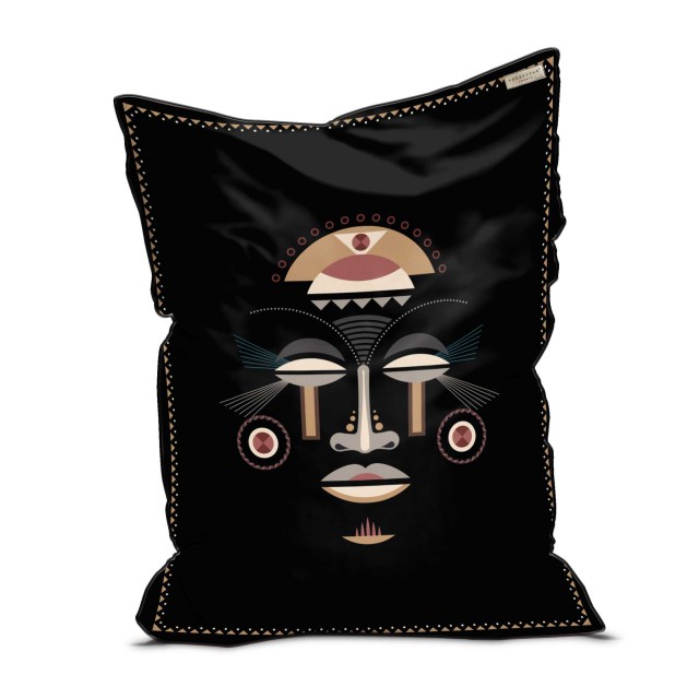 Véritable hymne et hommage à l'Afrique, les coussins aux finitions raffinées au passepoil s'ornent de masques intrigants et gais. Un toucher velours les recouvre tout comme le pouf. Ultra-confortable celui-ci, 100% polyester et rembourré de microbilles de polyester expansé, deviendra rapidement la pièce remarquable de votre décoration.