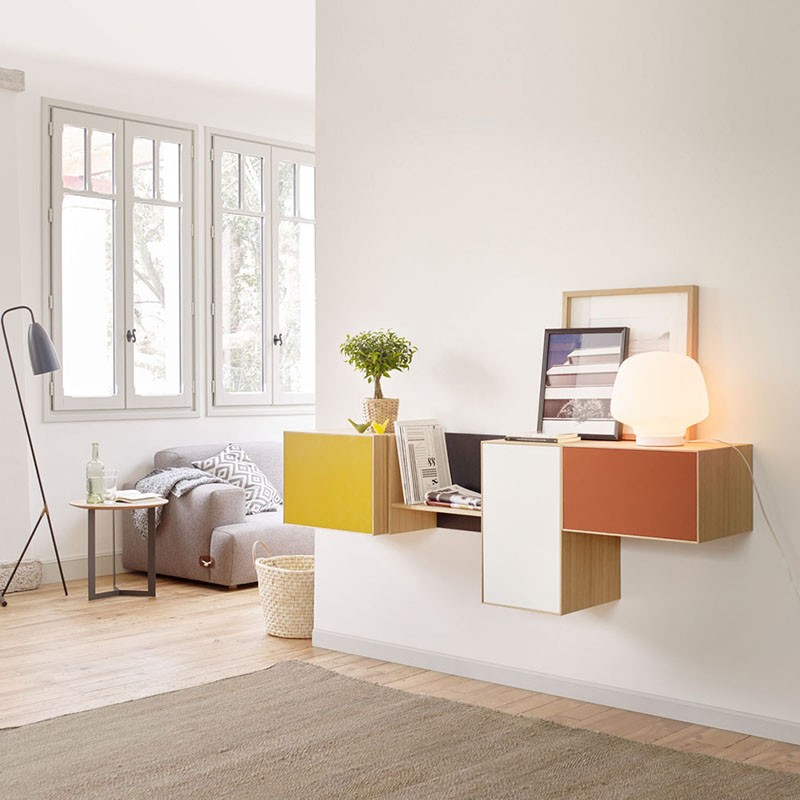 La collection LAUKI c'est alliance entre l'esthétique et le modernisme. Son contour d'un demi centimètre qui enveloppe toute la pièce, souligne les tiroirs et/ ou portes du meuble. Composée de multiples façons LAUKI, peut se poser sur pied ou directement accroché au mur. Créez votre meuble, sur mesure, avec différent bois ou laque de couleur, pour un meuble à votre image.