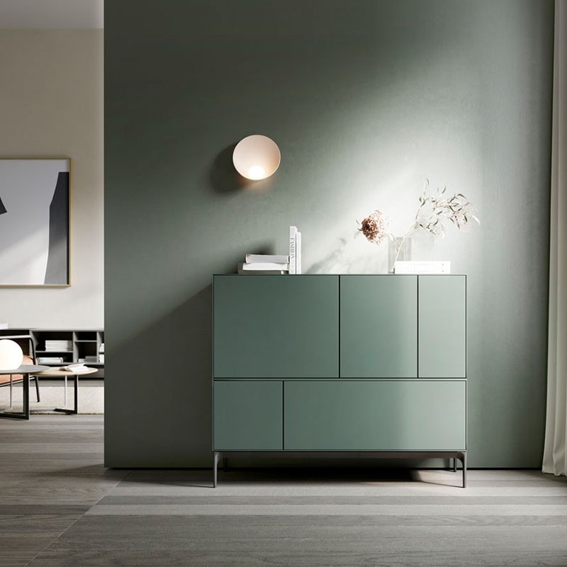 La collection LAUKI c'est alliance entre l'esthétique et le modernisme. Son contour d'un demi centimètre qui enveloppe toute la pièce, souligne les tiroirs et/ ou portes du meuble. Composée de multiples façons LAUKI, peut se poser sur pied ou directement accroché au mur. Créez votre meuble, sur mesure, avec différent bois ou laque de couleur, pour un meuble à votre image.