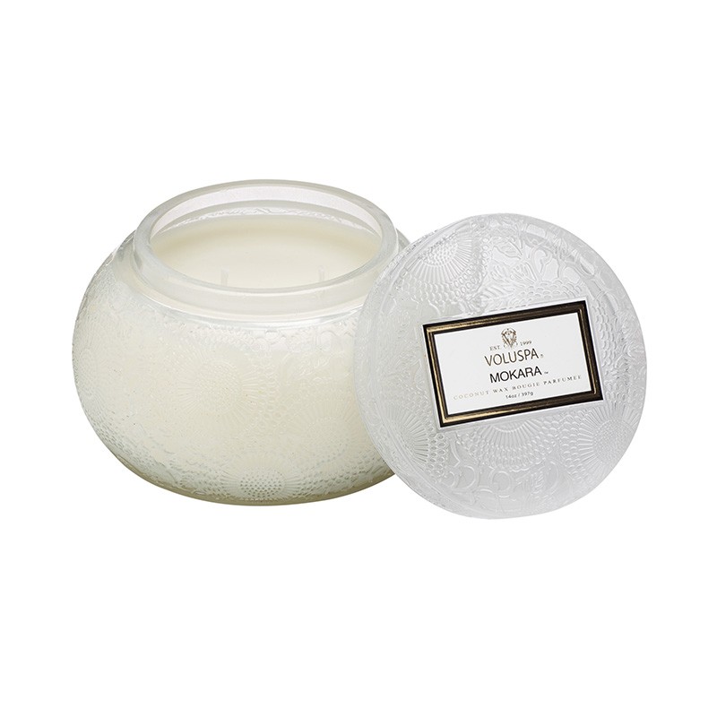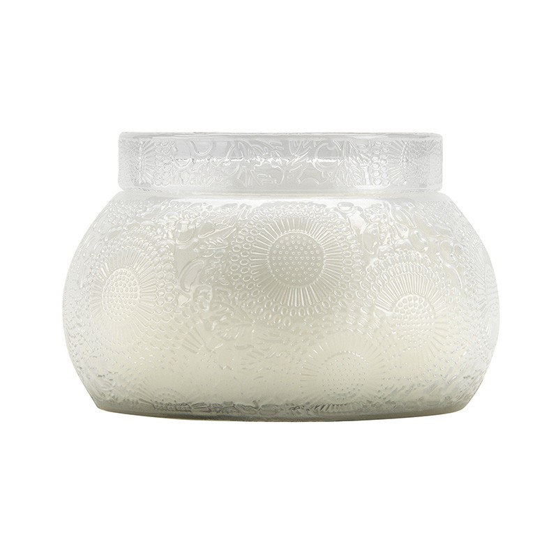 Bougie en verre ronde gaufré, elle vous créra une lueur de bonheur, grâce à son odeur captivantes. Bougie iconique de la collection Japonica, et inspiré par le papier japonais, créant un design fascinant.