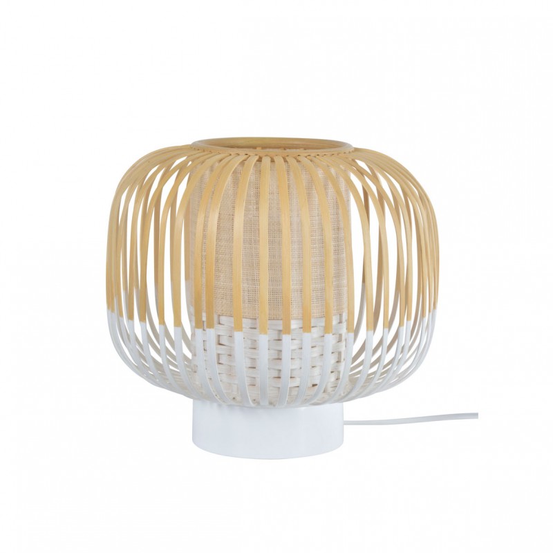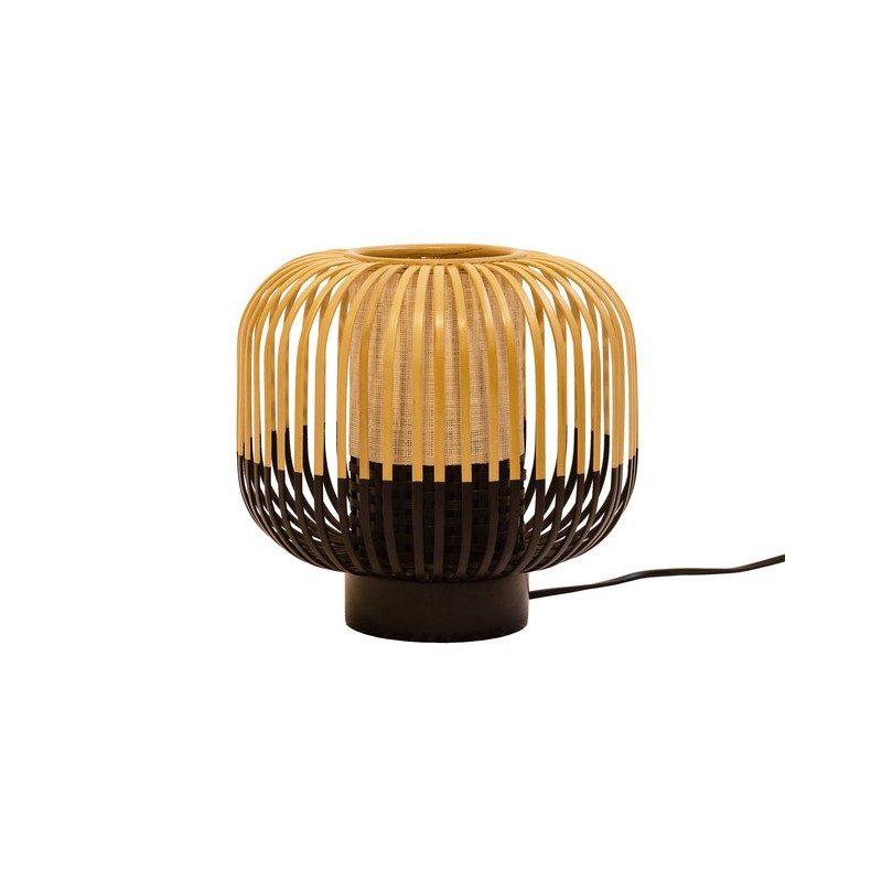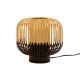 Son abat-jour bicolore, tout comme son diffuseur, sont composés de lamelles de bambous naturels, et d’un socle en bois.