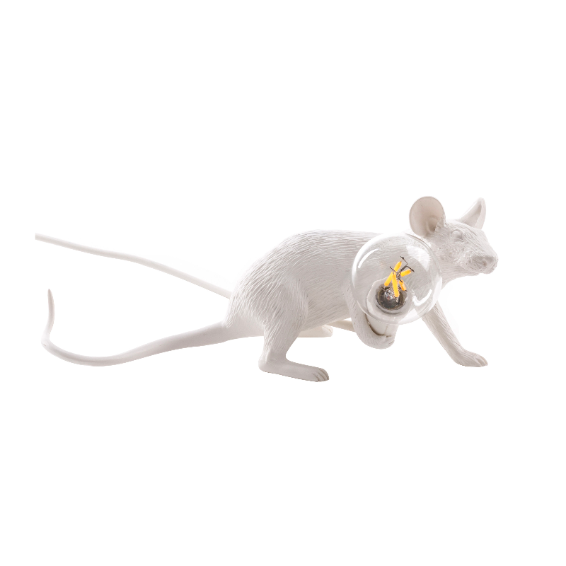 Créé tout en résine, le petit rongeur tient une ampoule à led en lieu et place du morceau de fromage habituel. Il peut être à la fois placé dans une chambre d'enfant ou un salon. Cette collection, ludique et décalée, plait aux petits
