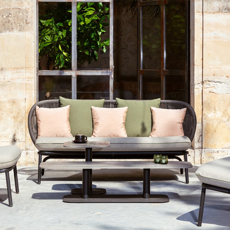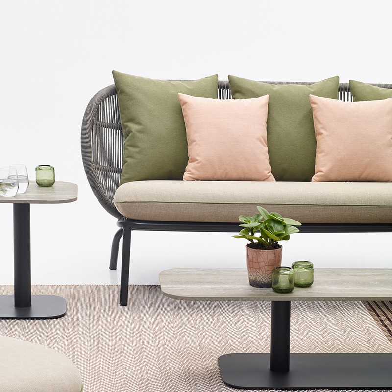 Installez-vous confortablement dans le magnifique canapé, dans le fauteuil lounge ou dans le fauteuil Cocoon de la collection Kodo de Vincent Sheppard. Le tissage tactile et les coussins confortables amènent votre expérience d'assise à un niveau rarement égalé. Design : Studio Segers. Corde en fibre acrylique. Cadre en aluminium themolaqué.