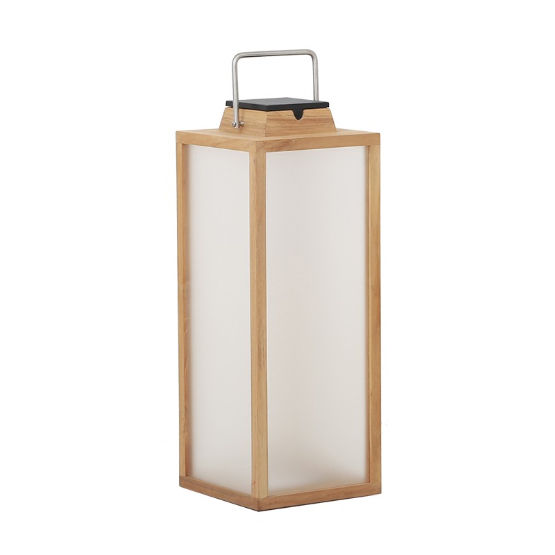 Lampe solaire TRADITION lanterne nomade, solaire et rechargeable en teck, verre dépoli acrylique.