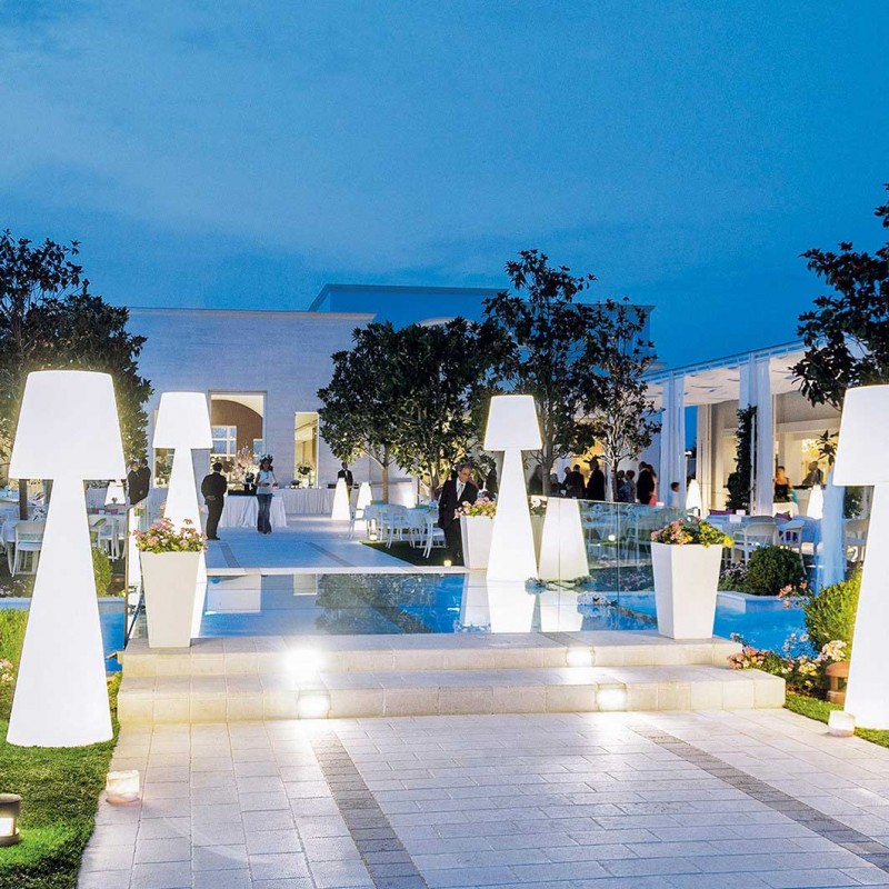 Le lampadaire Pivot allumé et sa chaleureuse lumière feront opérer sur votre jardin un charme mystérieux et envoutant.