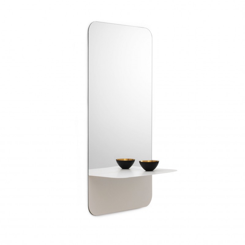 La forme allongée et géométrique de ce miroir est adoucie par des angles arrondis.