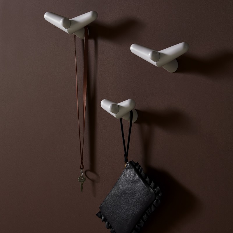 C'est en observant des avions à l'arrêt dans un aéroport que le designer finlandais Kasper Nyman a vu naître les prémices de ce qui allait devenir la Patère Tail Wing pour la maison danoise Woud.