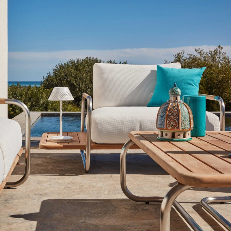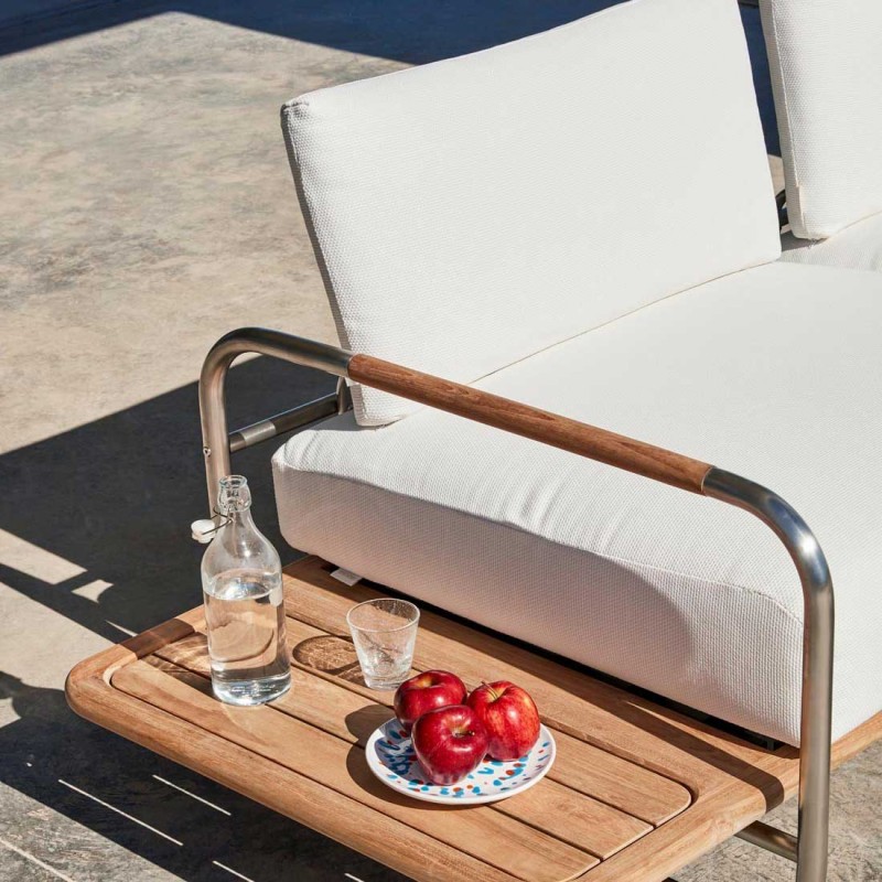 - Matériau : Structure : acier inoxydable et teck. Coussin : déhoussables en tissu 100% acrylique de couleur Luna.