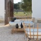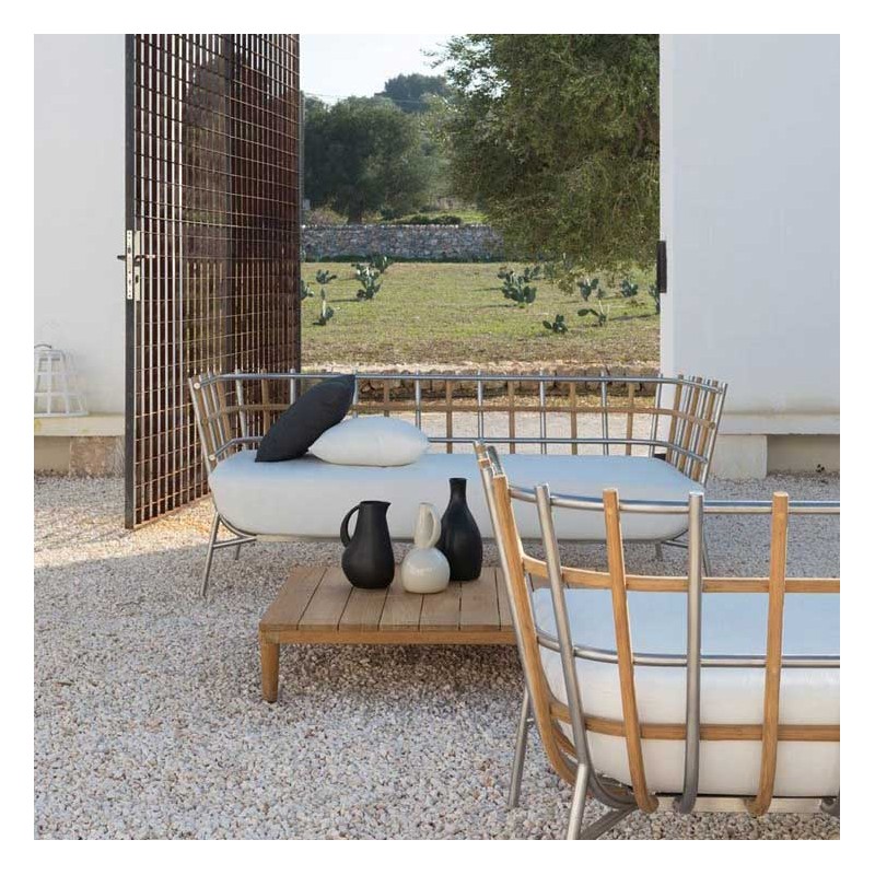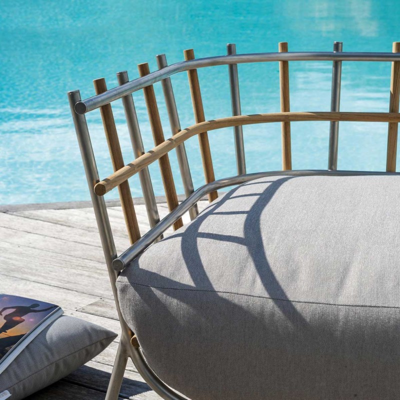 - Matériau : Structure : acier inoxydable et teck. Coussin : déhoussable en tissu 100% acrylique Tempotest couleur Latte.