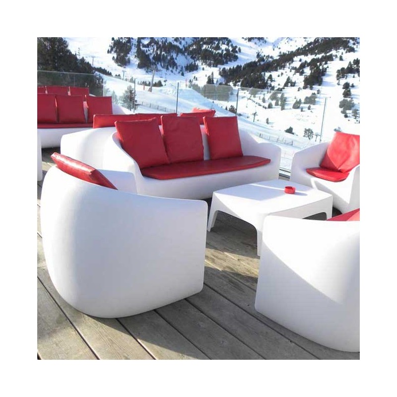 Grâce au matériau utilisé, le polyéthylène rotomoulé, Blow peut rester en extérieur en toute quiétude sans craindre les aléas, même extrêmes, de la météo.