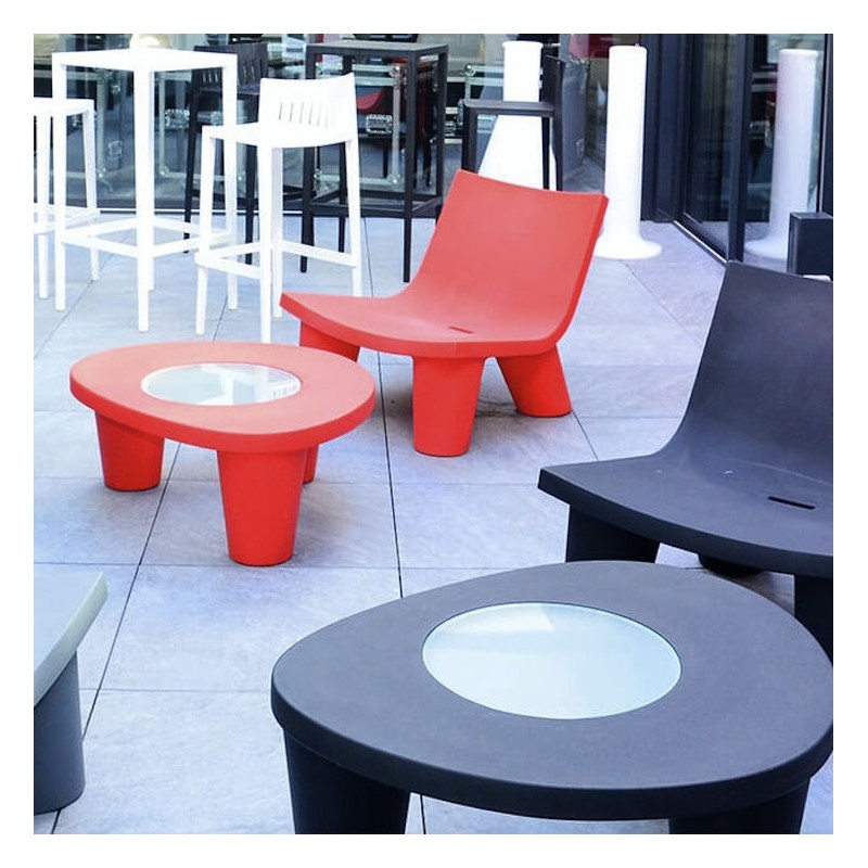 Fidèle au polyéthylène pour sa conception, la Low Lita se veut légère et facile à manier pour transporter son humour aux quatre coins de votre jardin. Les quatre pieds massifs, enfantins et volumineux sont présents tel un signe de reconnaissance.