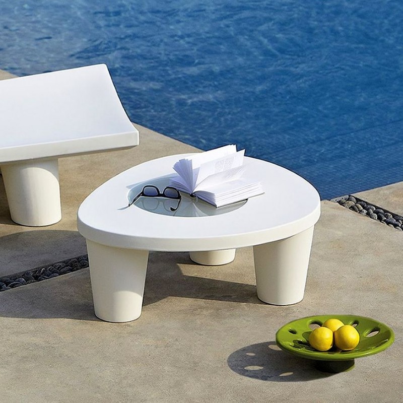 La table Low Lita se veut légère et facile à manier pour transporter son humour aux quatre coins de votre jardin.