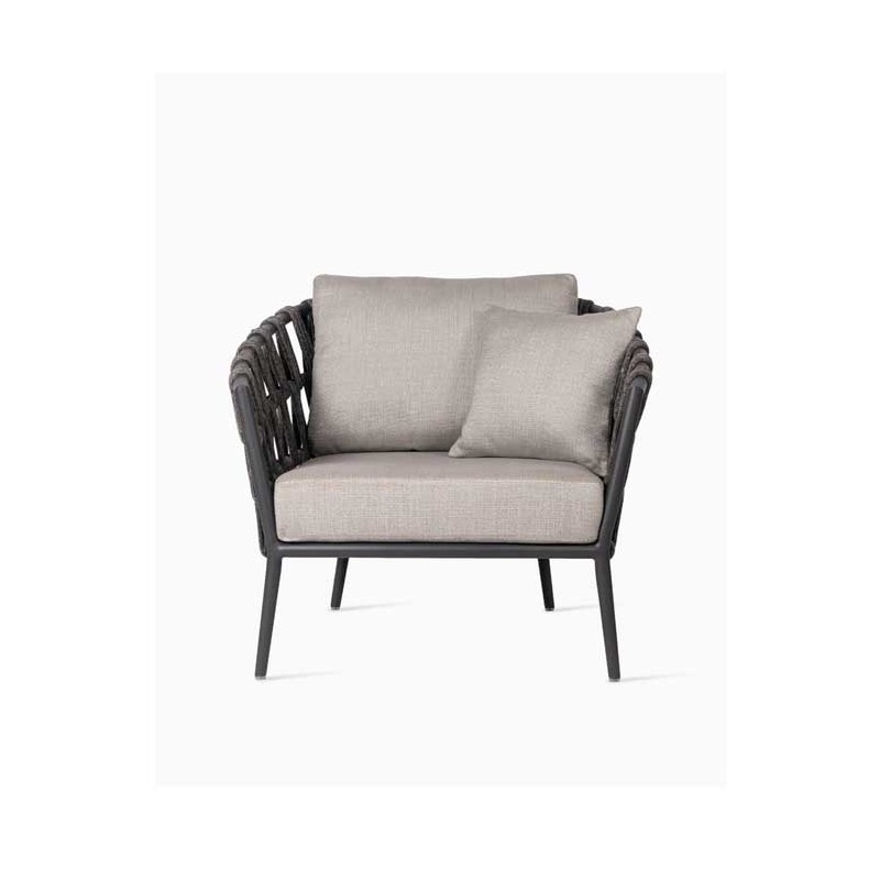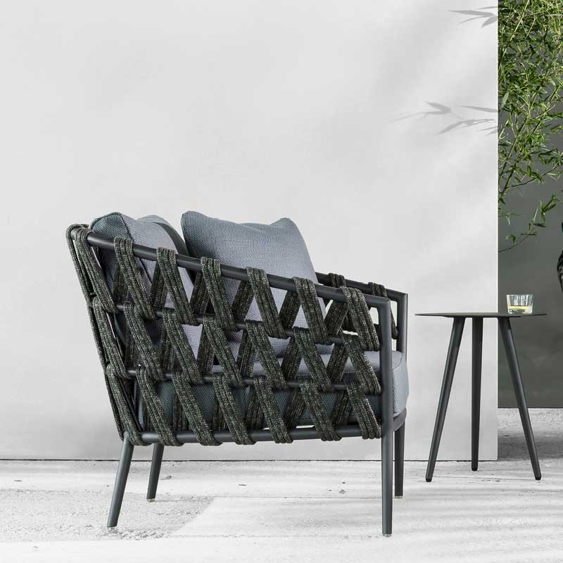 Comme pour le canapé, nous retrouvons le même motif graphique qui résulte d'un tissage unique en résine de polyester.