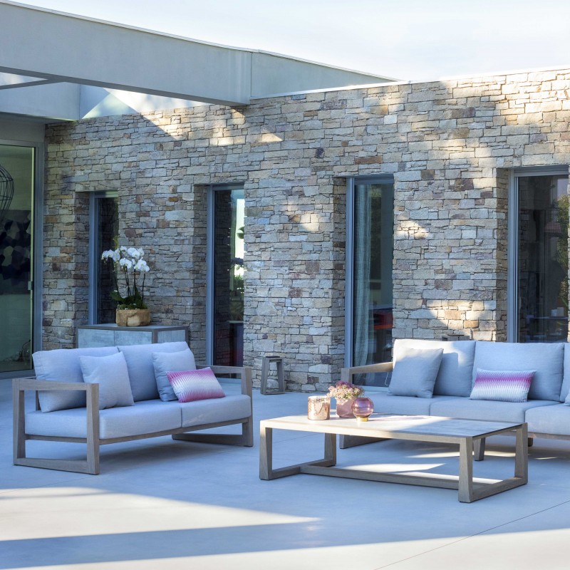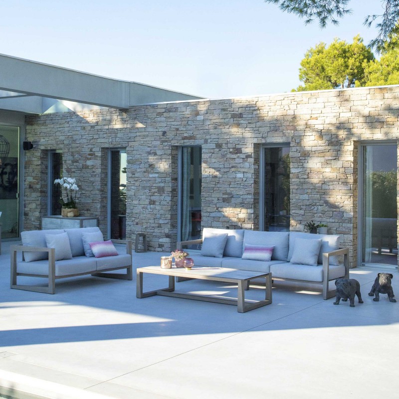 Le canapé Skaal imaginé par Les Jardins, marque dirigée par Alain Robin, est avant tout une invitation au confort. Confort qui se traduit par une assise aux dimensions parfaites, des accoudoirs pour vous prélasser mais également par le choix de coussin en tissu Sunbrella. La pérennité et la résistance n'en ont pas pour autant été omises comme dans la totalité des créations de la marque française.