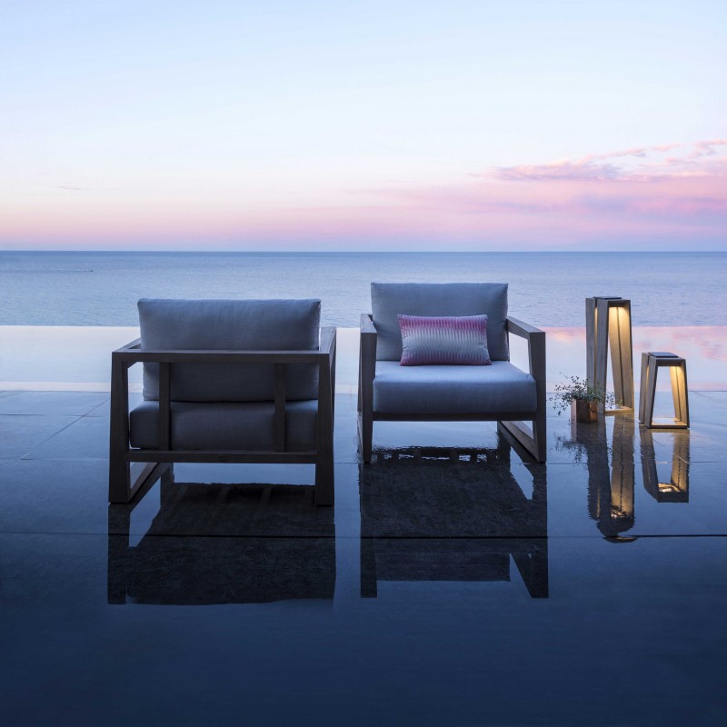 Conçu en Duratek pour la stabilité et la solidité de sa structure et en toile Batyline Eden pour sa longévité face aux intempéries, le fauteuil Skaal pourra également intégrer votre intérieur.