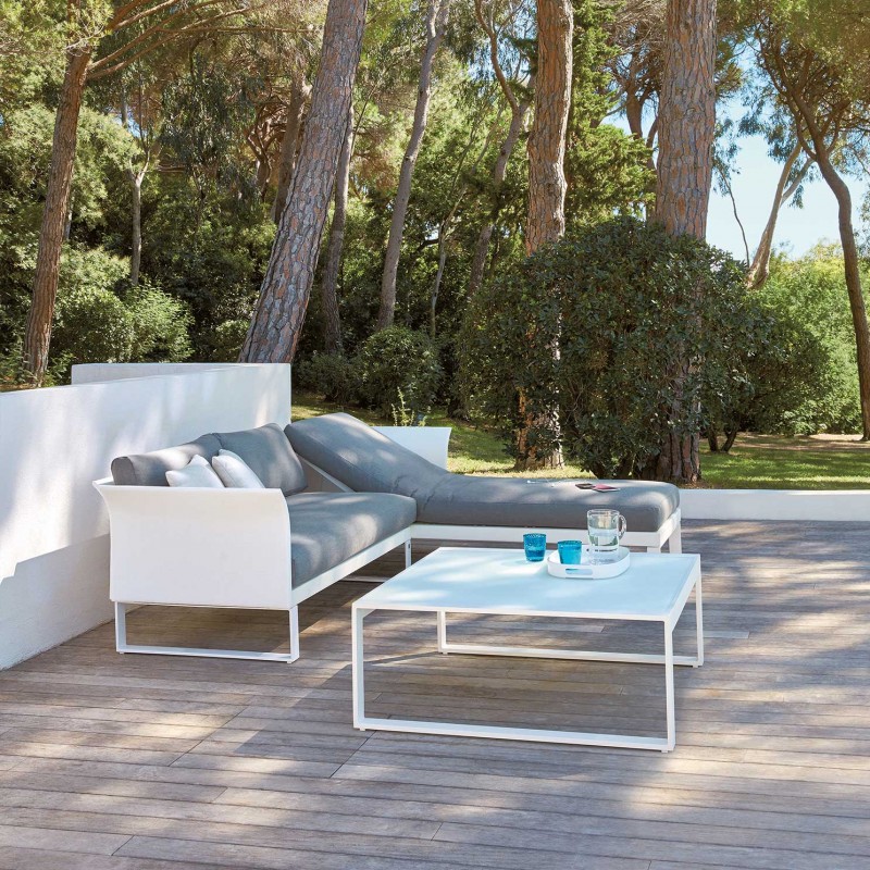 La marque française Sifas a eu la bonne idée de créer deux versions de la table basse Komfy : une carrée et une rectangulaire. Comme la collection du même nom, ce sont des modules rectilignes qui font la base de sa mise en forme.