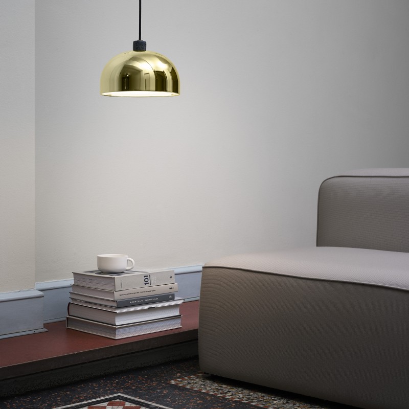 Pour la marque Normann Copenhagen, Simon Legald a eu l'audace de combiner deux matériaux que tout oppose. La base de la Suspension Grant Brass est en granit gris moucheté et vient se marier à elle un abat-jour en métal poli où tout n'est que brillance et douceur. Cette association crée un ensemble contrasté, épuré et étonnamment harmonieux.