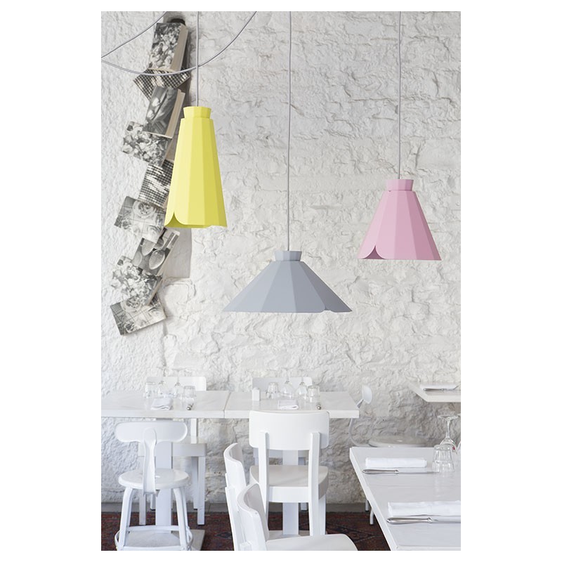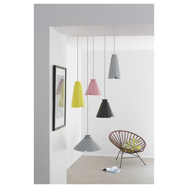 Selon le modèle choisi, cette "fleur industrielle", aux couleurs spécialement créées par la designer, semble s'ouvrir peu à peu.