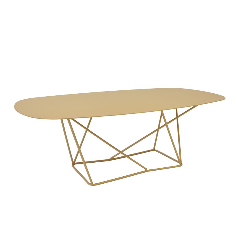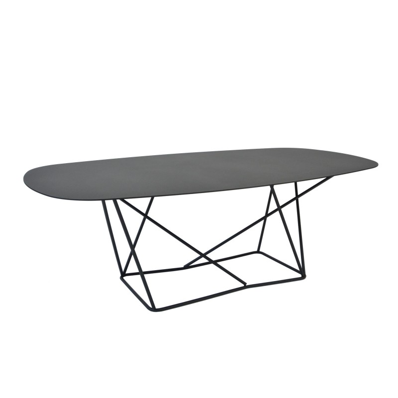 La Table Philéas s'impose par son minimalisme élégant et insolite. Un large plateau en tôle thermolaquée prend appui sur une fine et légère structure faite de fils d'acier. Celui-ci est recouvert de peinture poudre Epoxy également thermolaquée.