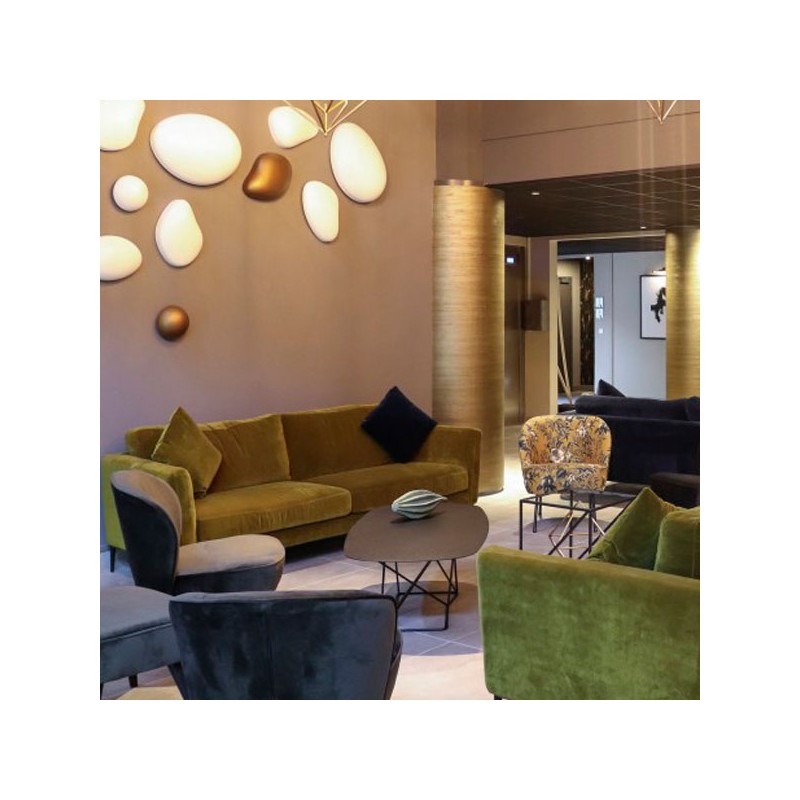 Son piètement très graphique qui laisse passer la lumière lui fait jouer une musique très aérienne.
