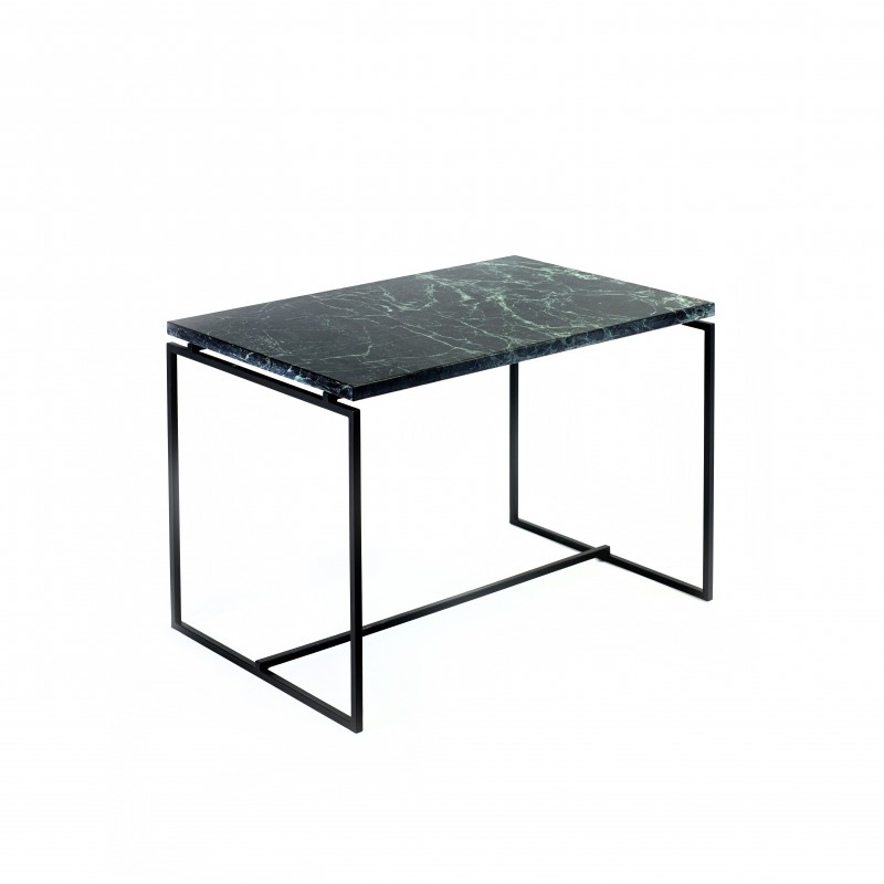 Le marbre vert qui fait le plateau est appelé Verde, du même nom que la table et se reconnait rapidement à ses veines blanches très caractéristiques.