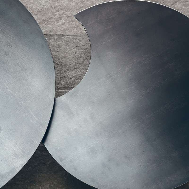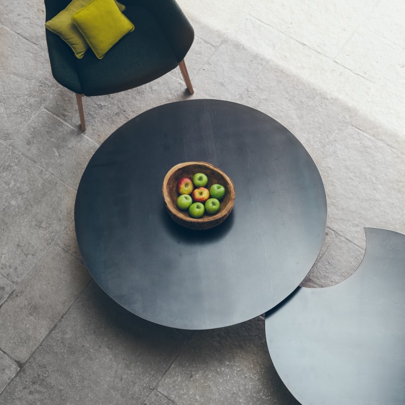Avoir dans son salon la Table Basse Hodeia Gigognes, c'est inviter un peu de poésie à pénétrer dans sa maison. Elle est uniquement faite d'acier et se compose de deux tables basses dont l'une peut se glisser sous l'autre. Ainsi vous avez le plaisir de pouvoir l'étirer ou au contraire de la réduire selon vos désirs et vos besoins. Chacune d'elle possède un unique pied central en forme de tube qui accompagne la douceur déjà ressentie avec la silhouette des deux plateaux.